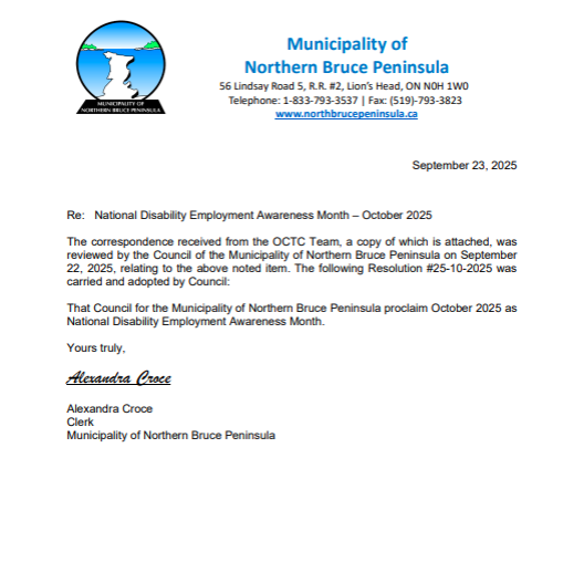This year, for the first time, Trent Hills, ON Mayor Milt McIver proclaimed October 2025 as National Disability Employment Awareness Month.