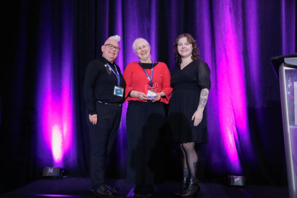PHOTO: A beaming Tara Pattison, Executive Director of PATH Employment Services in Hamilton, ON (left), holds her 2024 DES Award for Outstanding Employment Service Professional. She is flanked by Ingrid Muschta, ODEN Director of Special Projects and Innovation, and Chris Guillemette, Director of Support Services at Community Living North Bay and Vice-Chair of ODEN’s Board of Directors.